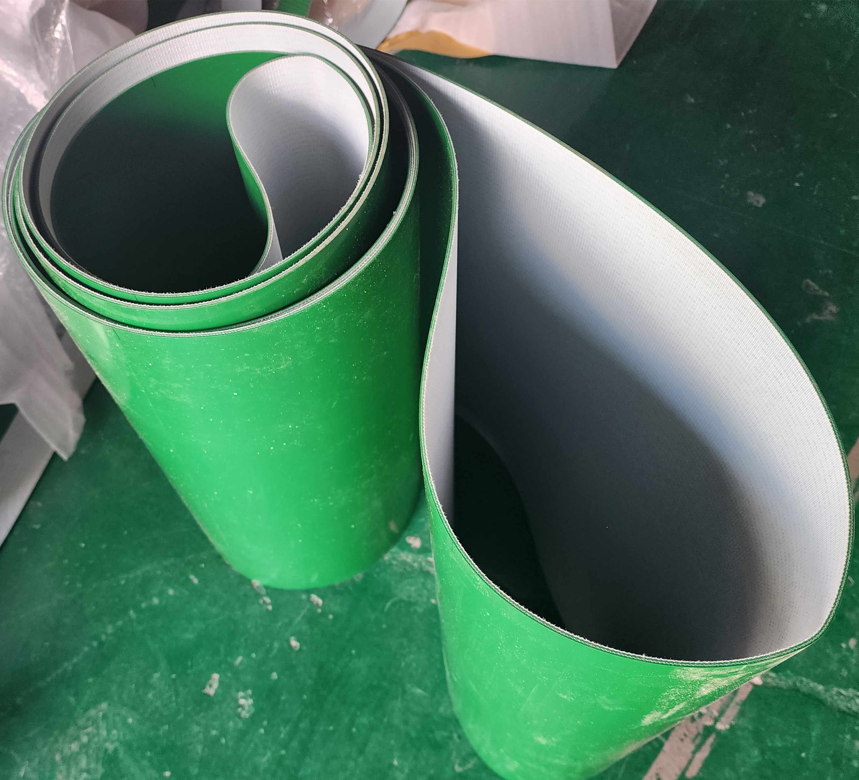 | Menyoroti | 3 lapis sabuk konveyor pu pvc,sabuk konveyor pu pvc pola datar,sabuk konveyor pvc hijau 3 lapis |